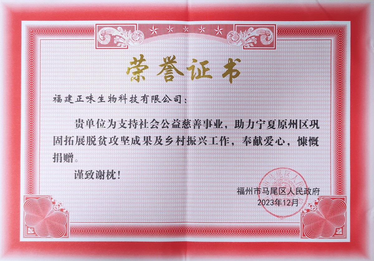 近日,正味榮獲馬尾區人民政府頒發(fā)的“情系原州助力閩寧協(xié)作愛(ài)心企業(yè)”稱(chēng)號,不僅是對正味多年來(lái)無(wú)私奉獻、慷慨解囊的崇高贊譽(yù),更是企業(yè)在鄉村振興道路上邁出堅定步伐,勇于擔當的生動(dòng)寫(xiě)照。